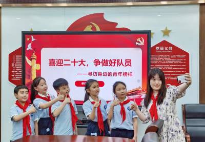 在五四青年节来临之际,4月27日,武汉市江汉区单洞新村小学组织少先队员开展了“喜迎二十大,争做好队员———寻访身边的青年榜样”主题活动。该校四(1)中队的少先队员们寻访了身边的优秀青年聂霖老师。在寻访中,优秀团员聂霖老师讲述了共青团的诞生,以及自己作为一名青年教师,在疫情防控中,开展了助人为乐教书育人有意义的志愿者工作。