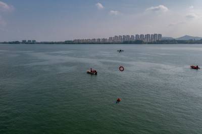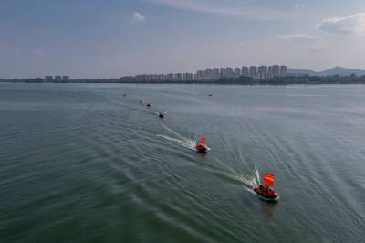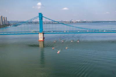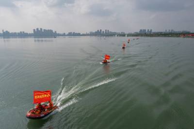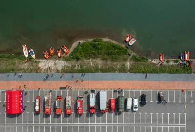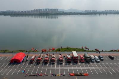 2022年4月29日,湖北省襄阳市消防救援支队组织全市消防救援队伍开展抗洪抢险实战拉动演练。