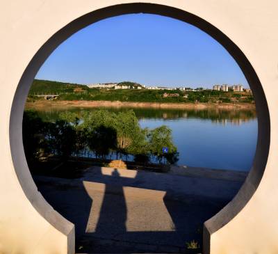 2022年5月3日,位于南水北调中线工程的核心水源区的十堰市郧阳区杨溪村开窗见水,出门观景。乡村周围江水环绕,青山翠绿、蓝天碧水,生态环境优良。