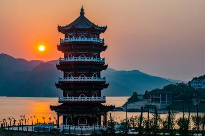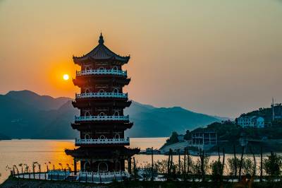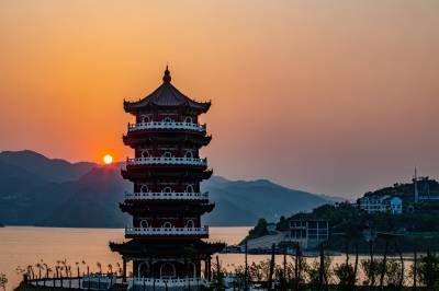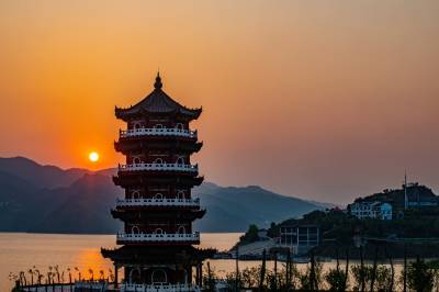 落日余晖映楼阁