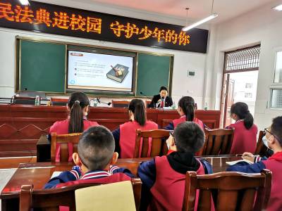 5月26日,巴东县官渡口镇中心小学大会议室里,师生聆听巴东县官渡口人民法庭贾鹏程庭长关于《民法典》知识讲座。