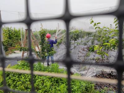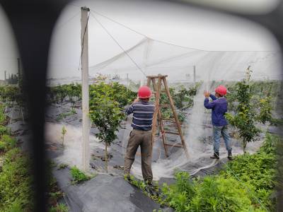 2022年5月26日,云梦县城关镇邱聂村邱家湾枫庄采摘园组织劳力忙着果园管理。清晨,人们来到果园,有的为果树架网防止鸟儿偷吃果子,有的忙着为果树上的果实套袋防病虫害和鸟害促进丰产丰收,有的为果树疏果除草,有的忙着为果树施有机肥促进高品质生长,早晨的果园一派繁忙。