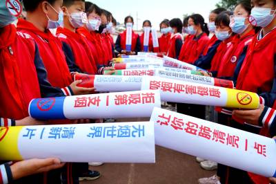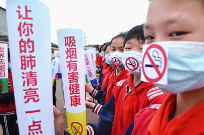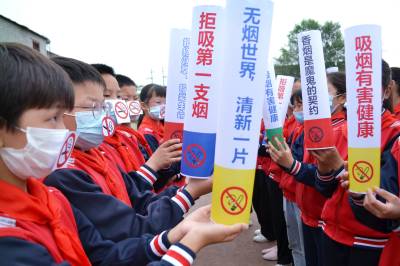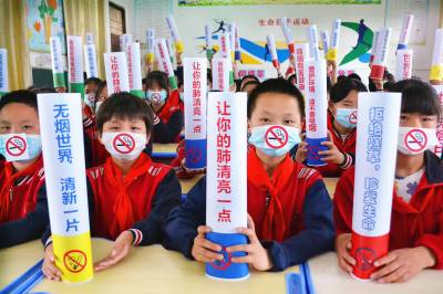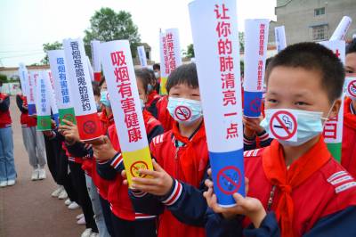 当日,湖北省十堰市郧阳区柳陂镇中心小学开展“珍爱生命 拒绝烟草”主题活动,通过让学生们了解“吸烟有害健康”和“烟草威胁环境”、认识二手烟的危害、拒吸“第一根烟”,并用旧挂历、旧报纸制作“巨烟”模型,写上吸烟的危害和戒烟劝告语,送家长或邻居烟民等方式,倡导健康生活,共营“无烟”环境,以迎接5月31日是第35个“世界无烟日”的到来。