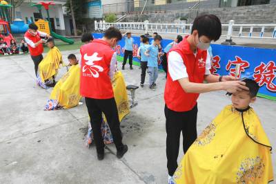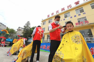 5月28日,竹山县宝丰镇天英留守儿童托管中心团支部携手尚品美业,在宝丰天英留守儿童托管中心开展“爱心义剪暖童心, 崭新形象迎六一”志愿服务活动,4名理发师志愿者参加活动,义务为托管中心30名留守儿童理发,让孩子们以崭新的形象迎接“六一”国际儿童节的到来。