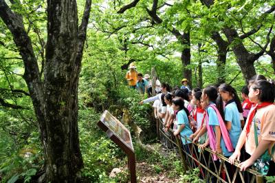 在横冲景区,学生们在老师的带领下,感受高山之巅的美妙风景,学习风力发电相关知识,了解珍稀野生植物,开展生活技能大比拼,在寓教于乐中感受家乡的生态环境与山水人文,引导学生热爱自然、保护自然。