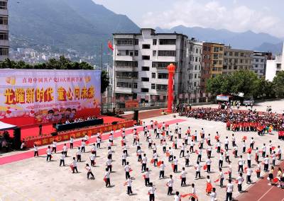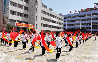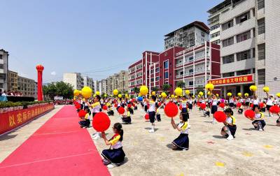 当日,该校举行“光耀新时代 童心向未来””为主题的六一庆祝活动,四、五年级以《童心向党》、《梦想同行》、《舞动青春》、《筑梦未来》四个篇章的团体操表演拉开了庆祝活动的序幕。孩子们身着节日的服装,手捧鲜花和国旗,唱出了在祖国怀抱中成长的幸福欢乐,舞出了在党的阳光下的朝气蓬勃,载歌载舞喜庆自己的节日。