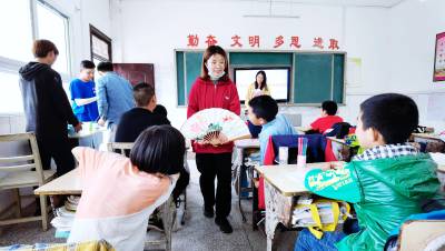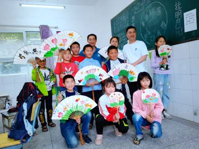 曹家湾村界牌完全小学,是位于南水北调中线水源区汉江南岸的一所乡村小学,在乡村振兴实施中,被列为江汉大学美术学院对口帮扶单位。当了解到这里缺少美术专业教师,不利于学生艺术素养的提升时,作为武汉市志愿服务品牌项目的江汉大学美术学院“艺术小课堂”师生,经过精心准备,走进界牌完全小学,热心地教孩子们上美术课,为即将到来的六一儿童节送上一份“折扇上的爱心”,受到该校师生发自内心的热烈欢迎。(视界网 周宗华 摄)