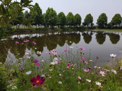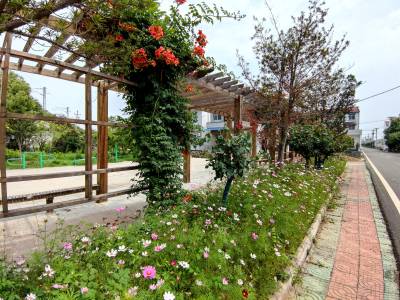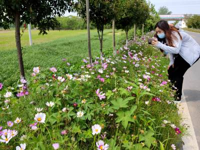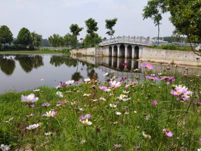 在道桥镇,不仅主要公路两边鲜花盛开,其他各村适宜种花栽树的地方,也先后种植花草树木绿化美化。在烟墩社区,社区所在地通往北边一直延伸到铁路边的道路两旁,鲜花盛开,与绿色的秧苗地等相辉映,在水塘和水稻地水面形成鲜花倒影,美轮美奂,初夏乡村如同一幅幅迷人的画图。(马亚丽 李渊博 陈保忠)