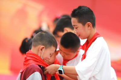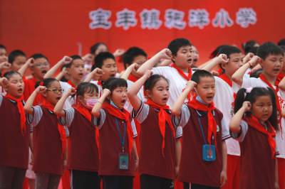 为深入学习贯彻落实习近平总书记关于少年儿童和少先队工作的重要指示精神和《中共中央关于全面加强新时代少先队工作的意见》精神,进一步规范少先队入队工作,“六一”国际儿童节前后,宝丰镇各学校开展新队员集中入队仪式活动。同时,各学校进一步规范少先队入队工作,保证适龄儿童充分接受队前教育,切实增强少年儿童的光荣感和组织归属感,结合学校红领巾奖章争章活动,分批入队工作有序推进。 (视界网 朱本双 摄)