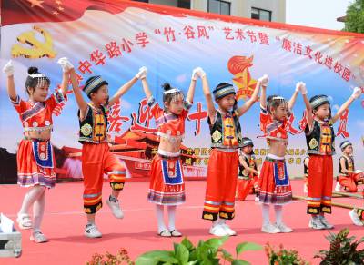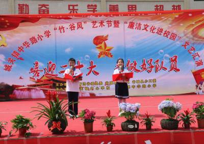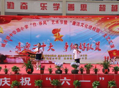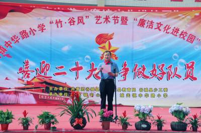 童声欢笑迎节日。5月31日,城关镇中华路小学举行隆重的“喜迎二十大,争做好队员”新队员入队仪式“竹谷风”艺术节暨廉洁文化进校园文艺汇演。城关镇各中小学、幼儿园校(园)长,中学团支部书记,小学大队辅导员参加。
