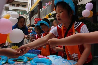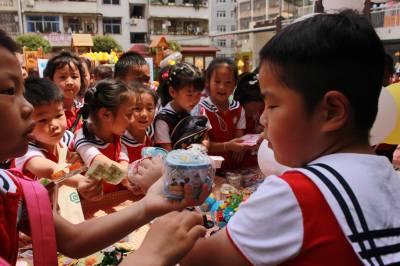 英山:“六一”节日别样过 七彩童年"嗨“翻天 5月31日上午,英山县县直机关幼儿园里轻缓而欢快的乐曲流淌,火红的石榴花映照着一张张笑脸......“六一”活动开始啦,“大家快来看、快来买,商品大降价,买一送一,机不可失时不再来!”小小售货员在招揽“顾客”;“老板、老板,我想买这个滑板车橡皮......”小小顾客们看中的商品唯恐被“淘走”。这就是大班“跳蚤市场”活动中的快乐“嗨“翻天场面, 操场上,老师与孩子们选货换货、讨价还价、兴致勃勃、不亦乐乎。据了解,该园打破传统音乐舞剧等常规活动,创新活动模式、创新活动内容,融入新颖活动元素,活动中模拟一个个的社会生活活动现场,让每一个幼儿参与进来,进入生活角色,让幼儿个性得到张扬。“我的事情我做主”小朋友们高兴地说,他们把“淘”来的小玩意与小朋友们一起分享呢,快乐在飞扬,笑容在洋溢......(王志敏 余昭霞)