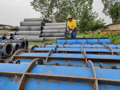 2022年6月5日,云梦县城关一家水泥制品企业忙着生产水泥管道。随着沟渠、城市管网等建设的需要,水泥管需求增加,生产企业根据市场需要积极组织生产,满足市场需求。