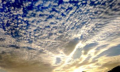 6月6日傍晚,竹山县竹坪乡落日的余晖洒在蓝天的白云上,形成了美丽的晚霞,美轮美奂,令人大饱眼福。(视界网 张云朝摄)