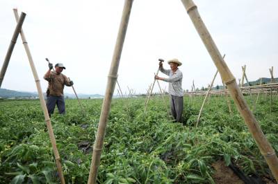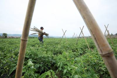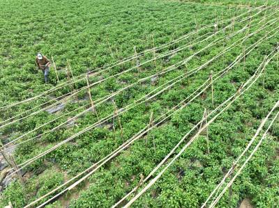 2022年6月11日,十堰市房县军店镇上茅坪村蔬菜基地规模连片,农民忙碌着为西红柿蔬菜搭架。近年来,房县实施“你下订单我生产,农超对接直供货”的方式,按照客户“点单”的蔬菜品种、数量生产干鲜菜,农民种菜由盲目发展向“订单”式供货转变,“订单”蔬菜为农民铸造了增收致富的“金饭碗”。目前,房县生产的阳荷、豇豆、黑木耳、香菇等生态优质干鲜蔬菜销往福建、厦门、四川、北京等大中城市商超、泡菜加工企业,干菜产品畅销日本、越南、韩国等30多个国家和地区,“订单”蔬菜已形成农民增收的重要支柱产业。