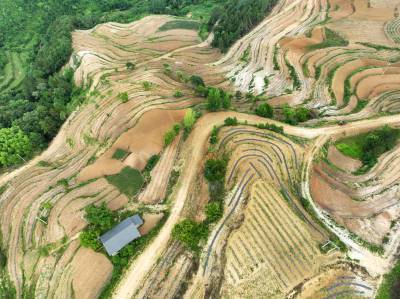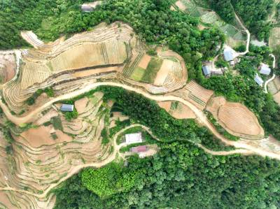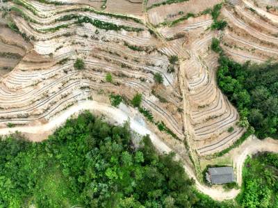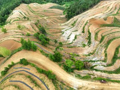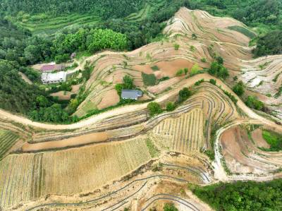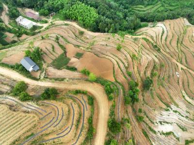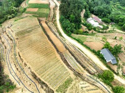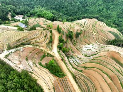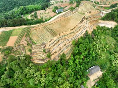 2022年6月12日,十堰市房县白鹤镇解家湾小流域摞荒地变成环山而绕的层层梯地,今年栽植的茶苗与老茶园一样将变成农民增收的“黄金茶园”。房县位于大巴山和武当山之间,地处全国茶叶生产核心优势区。近年来,房县综合治理小流域摞荒地,在修建的梯平地栽植“保水、保土、保肥”的茶苗,打造百里茶叶长廊,让茶叶产业成为农民增收的主导特色产业。目前,全县已有10.2万亩摞荒地建成茶叶基地,年加工干茶1125吨,年产值达到3.27亿元,带动2.1万户茶农农增收。