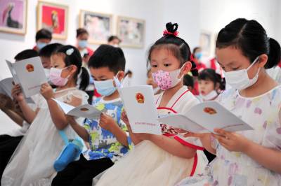 宜昌夷陵区积极引导在校学生参与“小小宣讲员 文明进万家”活动,孩子们通过学习《宜昌市文明行为促进条例》,了解文明行为常识,传播社会文明知识,带动身边家人、亲戚朋友一起加入到文明创建活动中来,让大家都成为文明行为的执行者、践行者。(视界网 张国荣 摄)
