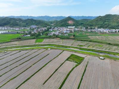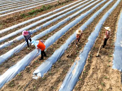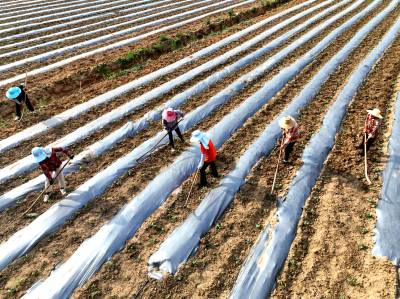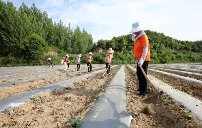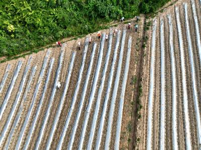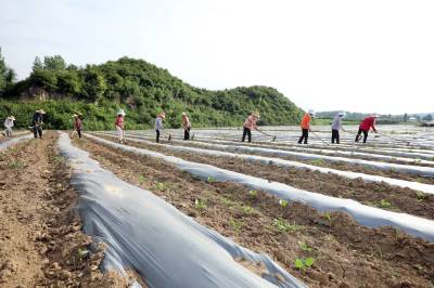 2022年6月16日,十堰市房县化龙堰镇汤峪村蔬菜产业基地一派繁忙,村子里的留守妇女在为蔬菜豇豆锄草。今年以来,房县采取“政府包联+小额信贷+公司带动”的措施,保稳乡村小微企业、农经产业基地生产经营,实现农民工、留守妇女稳岗就业,促进社会稳定、农民稳收增收。目前,全县6万多农民分别在家门口的小微企业、农业产业基地就业,人平月收入达3000余元。