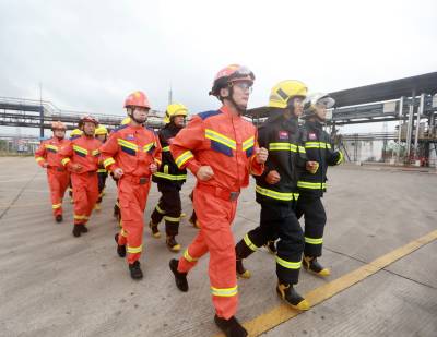 演练总指挥下达“演练开始”指令后,工艺处置组、抢险救援组、警戒疏散组、医疗保障组、后勤保障组、事故调查组、环境监测组、通信保障组等迅速展开战斗。后经过单位自救、园区响应、现场处置、调派增援、全面总攻等五个阶段圆满完成演练任务。(王方)