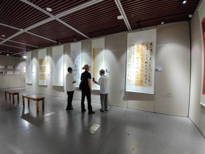 此次展览共展出作品100幅,其中名家书画作品40幅,他们之中有:兰亭奖的书法家、国展获奖的书法专业户;既有耋耋之年的艺坛名宿,又有屡获大奖的青年才俊。墨子书院学员书画作品60幅,既有5岁的幼童、在校大学生,又有教师公职人员,既有书法初学者,又有学书数年的老将。这些作品或飘逸灵秀,遒劲挺拔,或天真烂漫、朴实无华,充分表现了作者丰富多彩的精神世界和艺术才华,抒发了对祖国的热爱、对幸福生活的赞美,为即将到来的中国共产党101华诞增添了一道“文化大餐”。