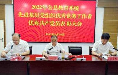 庆祝活动在雄壮的国歌声中拉开序幕。2022年,全县教育系统基层党组织和广大党员踔厉奋发争先创优,积极发挥战斗堡垒和先锋模范作用,为表彰先进弘扬正气,县教育局党组自下而上层层推荐后,表彰全县教育系统10个“先进基层党组织”、50名“优秀共产党员”、20名“优秀党务工作者”。