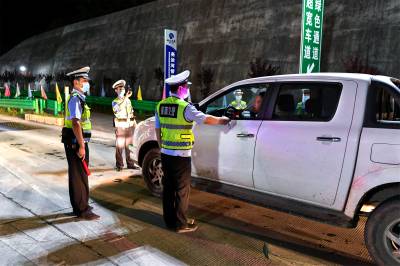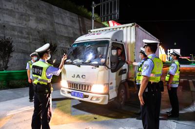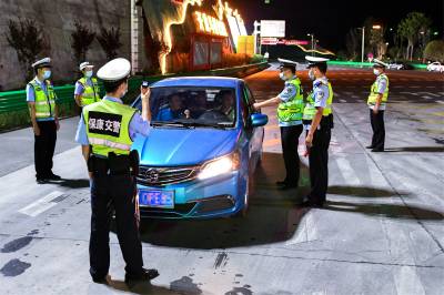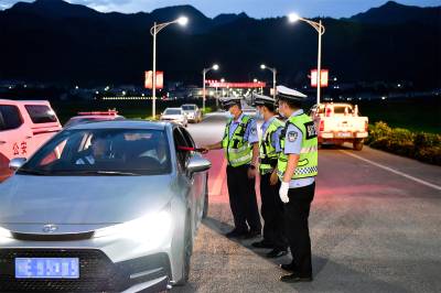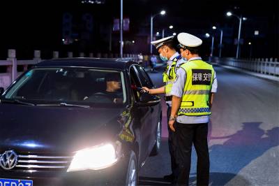 2022年7月3日晚,保康县公安局交警大队马桥中队民警正在道路上开展夜查酒驾行动。