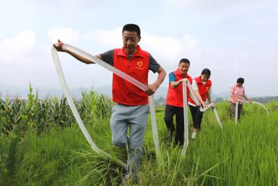 “家里的年轻人都外出打工了,多亏了镇村党员干部来帮忙浇水,不然这山坡上的百把亩水稻都干死了。” 7月12日上午,在竹山县宝丰镇深沟村4组田间地头,抽水泵正在满负荷运转,清水源源不断流到稻田,党员干部志愿服务队队员们田间地头抗旱忙,当地留守老人们非常感激。