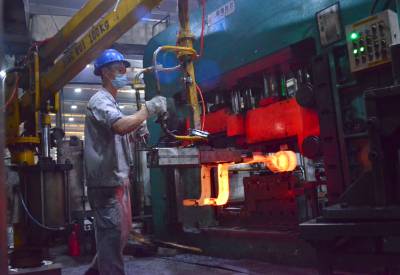 2022年7月14日,东风汽车底盘系统有限公司悬架弹簧工厂零件车间热加工岗位员正在对产品开展质量自检。