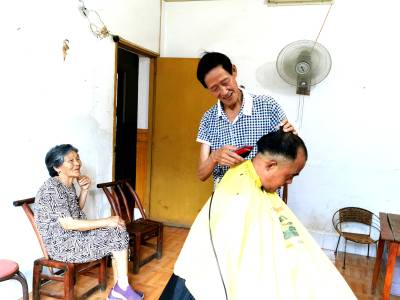 7月23日,巴东县官渡口镇初级中学退休教师向贤魁在自家给乡邻理发。 今年74岁拥有45年党龄的老教师向贤魁,退休后自费购买理发器材和设备,开起了便民理发店,为东坡、西壤口、巫峡口等社区(村)的老人、残疾、留守儿童免费理发。14年来为这些特殊群体免费理发超过1000余人次。向贤魁不忘初心,退休后便民理发,践行为民服务的承诺,受到当地好评。(视界网向国大摄)