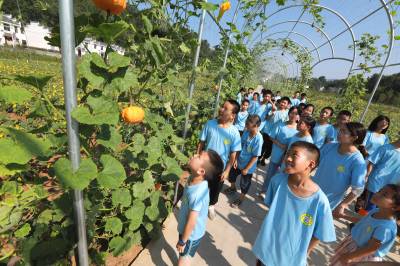 7月25日,湖北省竹山县宝丰天英留守儿童托管中心组织30余名留守儿童,走进宝丰镇五福龙井现代智慧农业产业园,开展“走进农业产业园,感受家乡大发展”活动,孩子们一边走、一边看、一边听、一边赞。泛水荷塘荷香四溢,农智园里瓜果飘香。村落依山而建,村子干净整洁,一条条平坦的的水泥路通向家家户户,一幅幅带有农耕文化特色的彩墙画散发着浓郁的乡村风情,与秀美田园风光相映成趣,构成了一幅优美的山水田园画卷。家乡的变化让他们振奋,助力家乡发展振兴成为孩子们的共同心愿。