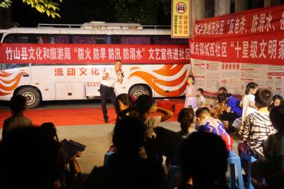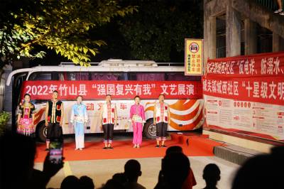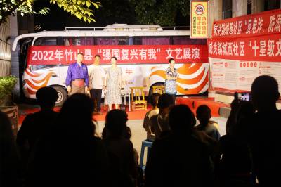 (视界网 邱亮 张雄 摄)为扎实开展“下基层、察民情、解民忧、暖民心”实践活动,传承和弘扬中华优秀传统文化,丰富基层群众夏日文化生活。7月25日晚,竹山县文化和旅游局“下基层、察民情、解民忧、暖民心”文艺志愿者小分队走基层巡演活动在城关镇城西社区盘龙上河城小区精彩举办。本次演出由县高腔剧团文艺骨干携手文化志愿者们,将歌曲、舞蹈、相声、小品等丰富多彩的表演形式带到小区,通俗易懂的文艺节目,让群众在家门口感受文艺清风、享受文化大餐,为基层群众倾情献艺,为炎炎夏日增添了浓厚的文化氛围。