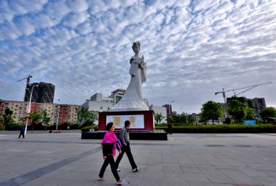 天上七夕,人间郧西。在天成像、在地成形。郧西的土地无不渗透着七夕故事的核心元素。在郧西,不仅有天河及天河岸边的石公公、石婆婆、悬鼓观、天池庵、金钗石、织女洞等自然景观,更有七夕广场、天河神牛雕塑、织女雕像、天河沿岸栏杆上的七夕诗词歌赋、大尖山上的28星宿等一批人文景观,还有七夕大道、牵牛大道、金簪桥、鹊桥、织女凉粉等以七夕故事元素命名的路、桥及美食等民生设施。