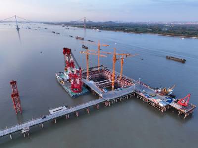 世界最大跨度三塔斜拉桥-马鞍山公铁两用长江大桥 开始全面进入塔柱施工阶段