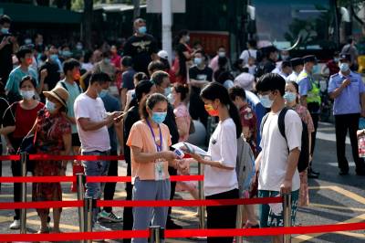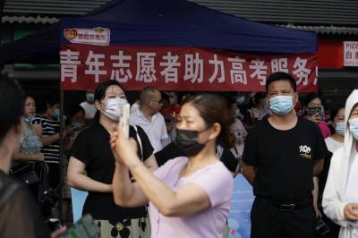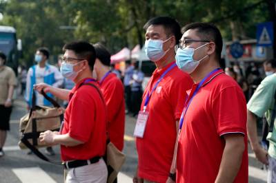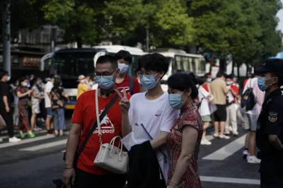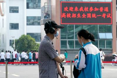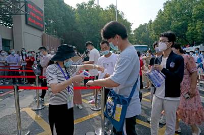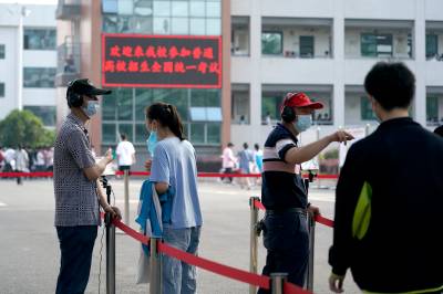 2022年6月7日,高考第一天,在武汉市东西湖区吴家山中学考点,考生们有序进场。 (湖北日报全媒记者 倪娜 摄)