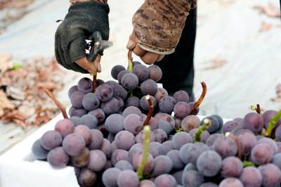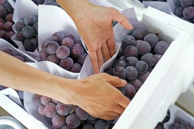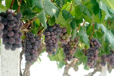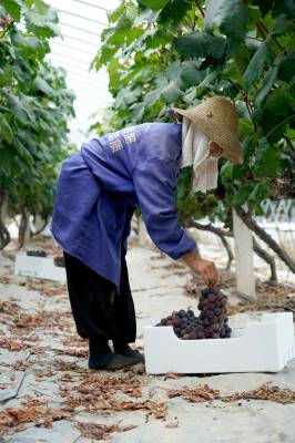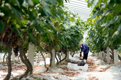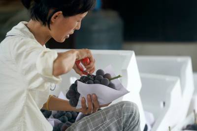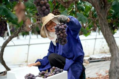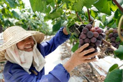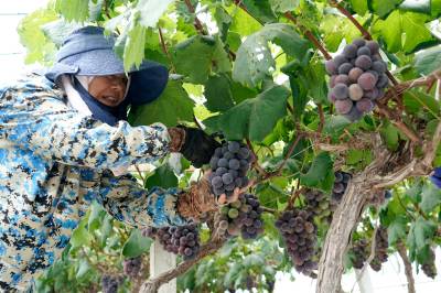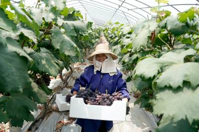 2022年6月22日,在东山陈家冲大队鑫禾家庭农场内,乒乓葡萄挂满枝。(湖北日报全媒记者 倪娜 摄)
