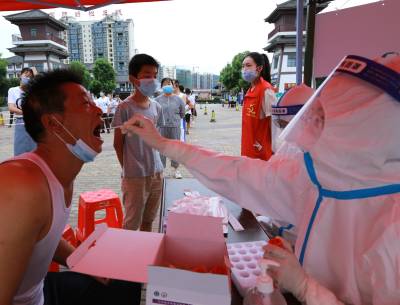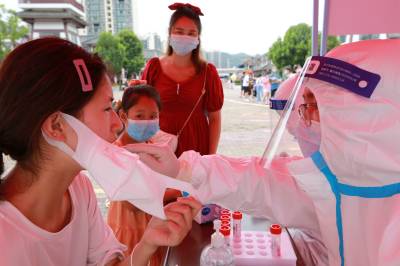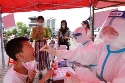 8月10日,竹山县城关镇卫生院联合县中医院组织20名医务人员在该镇莲花、南门等村开展常规性全民核酸检测活动。