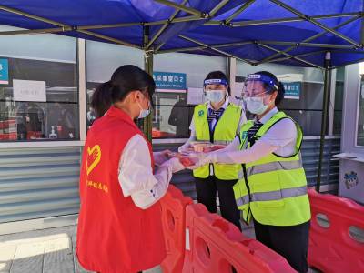 自本次十堰地区疫情发生以来,六里坪高速卡口的防疫人员夜以继日,坚守岗位,奋战在一线。近来十堰持续高温天气,频频“热成全国之最”。看到站口卡点防疫人员在烈日炙烤下汗流浃背的样子,收费站志愿者们为驻守卡点的“疫”线工作人员送去西瓜、矿泉水等防暑降温物品。志愿者们细心地将西瓜、矿泉水送到值守人员手中,通过一个微笑、一瓶水、一份西瓜,用行动表达对防疫人员昼夜不停坚守站口守护的感谢。