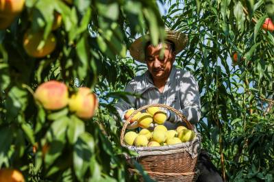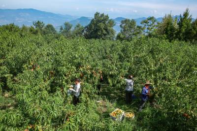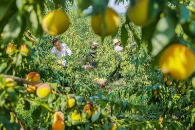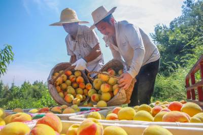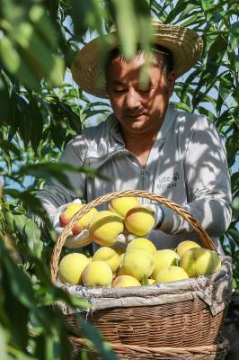 “我们都是这附近的,在这做工一天200块钱,早出晚归蛮方便!”谭志能提着满满一篮子黄桃,正在往三轮车里装,他小心翼翼地轻拿轻放,深怕碰坏了一个。最近几天来,每天都有八九个像老谭一样的附近的村民,在王坤的桃园里做工,采果、分拣、套袋、装箱,要的是人手。据王坤估算,一季黄桃下来,他要用120个工、支付2万多元报酬。租给王坤土地的7户村民,同时也是他合作社的7名社员,每年不仅可以领取4000多元的流转费,还可以在桃园里打打临工,平均算下来,每年可增收3000多元。
