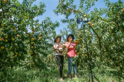 “手机前的朋友们,走过路过千万不要错过,最新鲜的桃子不在超市、不在水果市场,而在我身后这片桃园里……”王坤忙着打包装车的同时,他的爱人陈霞正顶着烈日,在黄桃园里热情洋溢地直播带货。连续几天来,每天都有超过500单黄桃通过快递发往各地,最多的时候有800多单,单日就有2万多元销售收入。“我们不敢接太多单,一是果子的量跟不上,二是包装的人手不够。”王坤说话间带着些许无奈。
