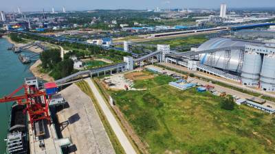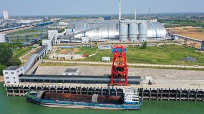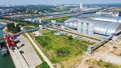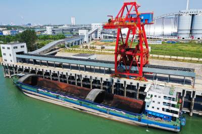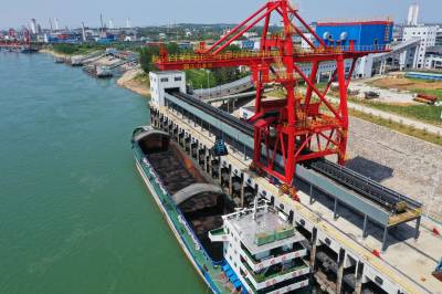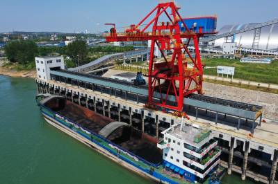 2022年8月24日,鄂西煤炭储运基地正在转运煤炭。该基地位于枝江市姚家港国家循环经济示范园区,是省级战略和重点加快实施项目,年煤炭处理能力1000万吨,静态储存能力150万吨。目前,煤炭专用码头、紫姚铁路及条形煤库三处进煤至筒仓配煤后,通过给煤机和双向全封闭式管带机配合,实现姚家港化工园区全园覆盖,同时,通过长江水运、紫云铁路、318国道向长江沿线、鄂西地区客户供应。二期工程今年竣工后,“公路+铁路+水运+全封闭管带运输”多式联运立体交通运输体系就会高效运行。视界网刘卫东摄