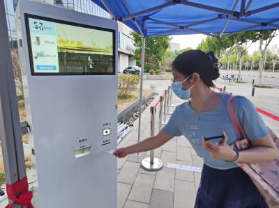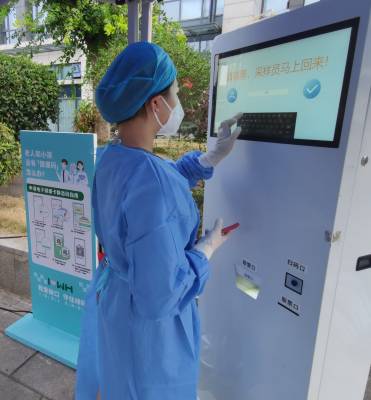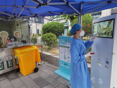 8月23日是农历廿四节气里的处暑,在湖北省武汉市硚口区古田街道军院社区江山樾小区门前,一台国内首款核酸信息自助录入智慧核酸宝设备,出现在了核酸采样舱旁,市民在此拿出手机体验,将自己的电子健康卡静态码对准该设备的扫描区,瞬间完成采样前的信息录入,该信息录入过程仅用时3秒,替代了核酸采样现场防疫信息录入员的工作。