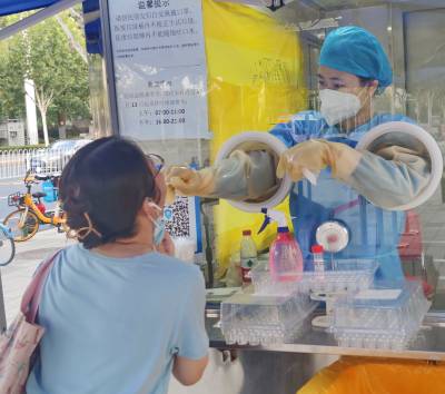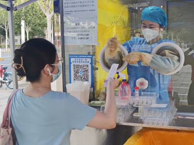 武汉:硚口区居民在处暑之晨 体验智慧核酸宝新科技