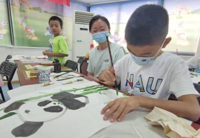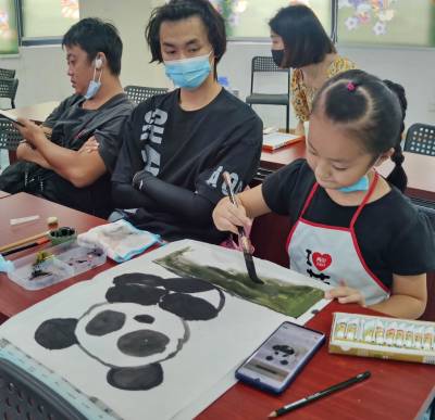 为进一步弘扬中华传统文化,培育深厚的民族情惑,助力文化复兴,坚定文化自信。同时丰富少年儿童暑期末文化生活。8月24日,武汉市江汉区图书馆举行了喜迎二十大走进传统国画----亲子绘画活动。吸引了10余个亲子家庭积极报名参加,他们全部是国画零基础的家庭,通过美术教师现扬讲课,心灵手巧用画笔,画出自己喜欢的国宝熊猫神态,榻榻如生,可圈可点。画出的喜迎二十大春天来了,充满了春意盎然,春光明媚,希望在奋斗新时期的田野上。