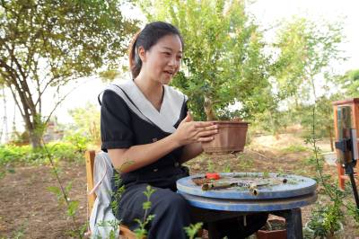 “大家再看看这个小微盆景,这造型、这姿态、这叶片,有没有喜欢的老铁?喜欢的赶快下单!”8月29日,京山市孙桥镇孙桥社区的袁丽正在“京山花木盆景协会研学中心”的盆景园里直播带货,她一边介绍对节白蜡小微盆景的颜值,一边转动着花盆,让大家360度全方位观赏,吸引了不少游客驻足关注。像袁丽这样直播带货对节白蜡小微盆景的,在孙桥镇大约有100多位主播,400多位工作人员。通过现场直播,小微盆景源源不断的流入全国各地,成为装饰家居和办公室的理想之选。