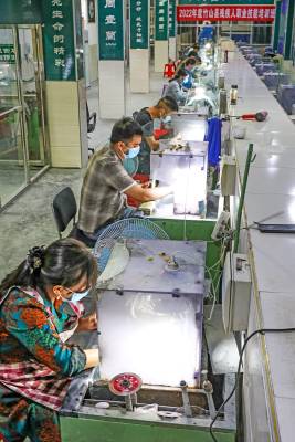 8月30日,竹山县华周一兰公司,绿松石生产车间的工人们,正在各自的岗位雕刻、打磨、抛光形形色色的绿松石工艺产品。被誉为“中国绿松石之乡”竹山县,其绿松石资源储量占全国的70%、世界的50%。近年来,竹山县积极实施“文玉一体、玉旅结合、玉商融合、文创互动”发展战略,创新打造百亿元绿松石产业集群。目前全县绿松石市场主体达5000余家,其中规模以上和限额以上企业25家,带动就业7万余人,年综合产值近50亿元,产品全球市场占有率超90%。今年元至8月,已实现销售收入30多亿元。