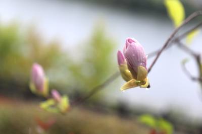 8月31日,笔者在竹山县城关镇南门村经纬大道路外绿化带看到,排列整齐的一行武当木兰树枝上,粉红色的或白色的花朵次第绽放,过往市民驻足观赏,并拍照发送到朋友圈。