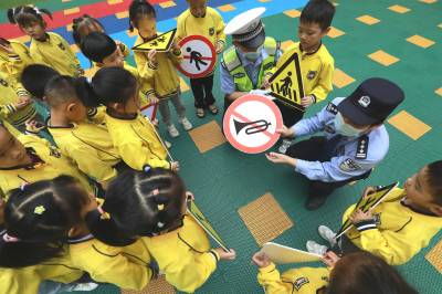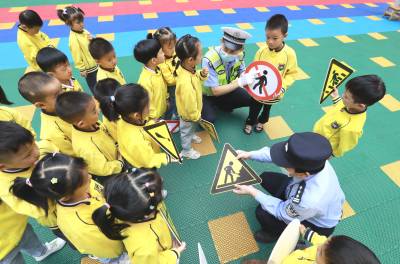 活动现场,民警根据校园周边道路交通环境,紧贴学生日常出行实际,用通俗易懂的语言,讲解了过马路注意事项、乘车如何正确系安全带、戴安全头盔以及怎样避免交通事故发生等交通安全常识,给孩子们讲解各种交通标志,还针对上下学时段,学生闯红灯、乱穿马路、追逐打闹等不安全行为进行教育。通过讲解法制意识、防范意识、靠右意识、红绿灯意识、观察意识、人行横道线意识、头盔意识、报警意识等方面的知识,引导孩子们学会保护自己,避免和减少交通事故的发生。
