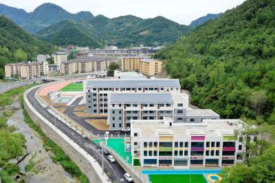 后坪镇中心学校始建于1968年。2018年7月,为配合保神高速和郑渝高铁建设,后坪集镇学校启动整体搬迁项目,今年5月工程竣工,搬迁后的后坪镇中心学校新校区,充分利用校园依山傍水的自然优势,打造生态、人文校园,极大地改善了校园环境,提升了办学能力。(视界网杨韬 姜雪飞摄)