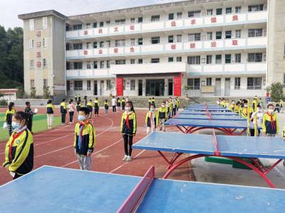 9月5日上午,丁家营镇九年制学校学生分班级在教学楼下排队,依次采集咽拭子,进行核酸检测。
