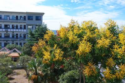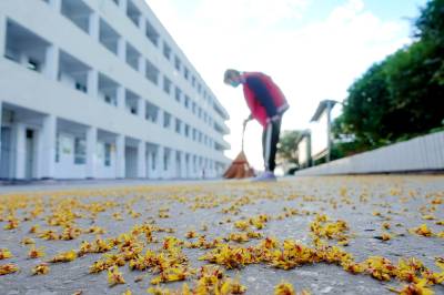 当下,杨溪铺镇中学校园秋色渐浓。抬眼望去,渐红的枫叶、飘香的丹桂、花开正旺的灯笼树与合欢树等20余种绿色植物随意搭配,把校园装扮得如诗如画,一阵微风吹过,伴随着淡淡的清香,花瓣纷纷扬扬飘洒,似给大地披上了一层黄金甲,学子们徜徉其中,恍如置身在秋天的童话里,十分惬意。每到秋季,该校园的树叶逐渐由绿变黄、变红,多彩的树叶美如画卷,成为校园内一道靓丽的风景线。