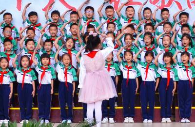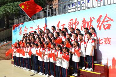 活动中,1000余名小学生身着节日的盛装,个个精神抖擞,《我和我的祖国》《我爱你,中国》《没有共产党就没有新中国》《团结就是力量》《我的中国心》等40余首红歌被传唱,歌声嘹亮,响彻校园,孩子们以震撼人心的士气向祖国致敬,用真挚的歌声弘扬时代主旋律,传承红色革命基因,抒发了爱国赤子情怀。